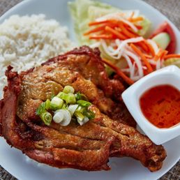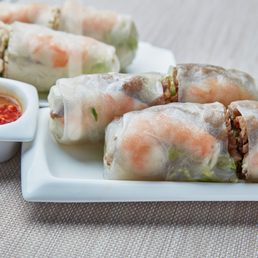 We ordered lunch for pick up, a grilled chicken bahn mi and chicken and shrimp summer rolls- I wish they used the same chicken that was in the bahn mi for the summer rolls because the summer roll chicken was so hard and chewy... like it was over cooked? I asked for sriracha and was told there was already one in the pack, I asked for an extra and it maybe was a communication issue or they only give 1 per order but we def could've used another. The bahn Mi was tasty and everything but the chicken in the summer roll was good- I'll have to try the tofu summer roll next time, with extra sriracha